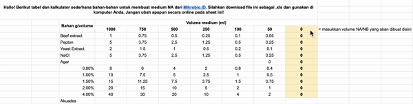 Kalkulator Nutrient Agar dan Nutrient Broth Online